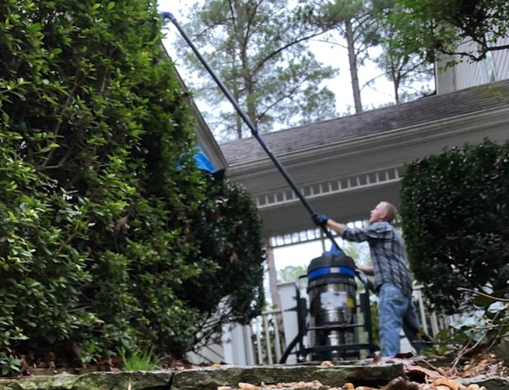 Unlike many other types of gutter cleaning companies, we're able to safely stay on the ground the entire time. (In fact, we don't even own a ladder!)